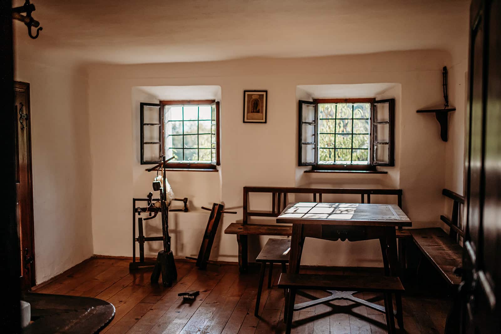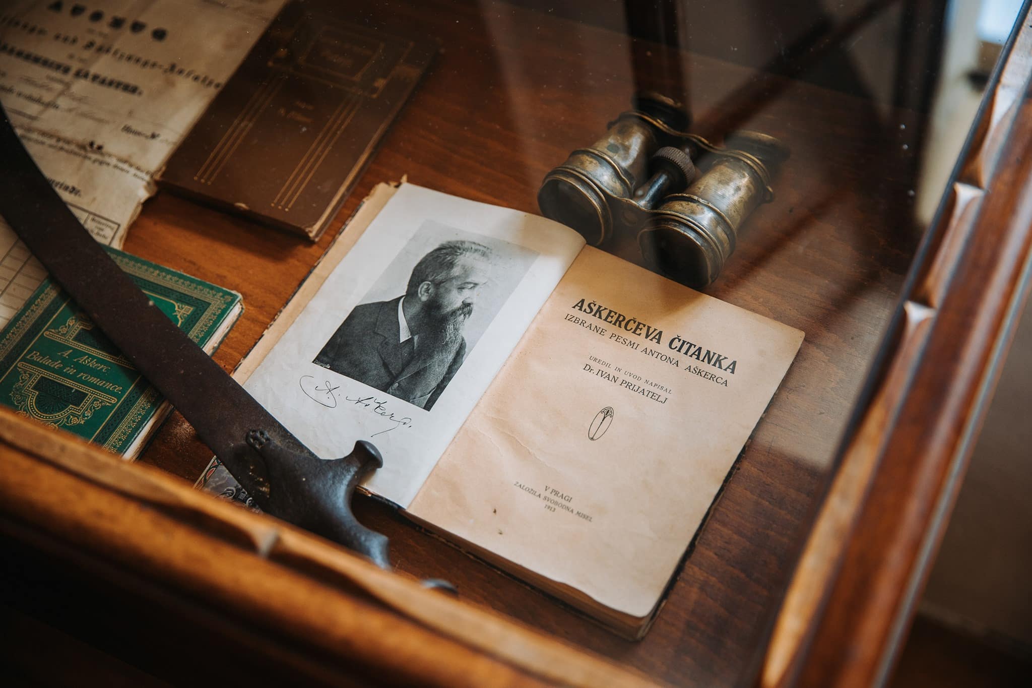 ohranja v izvirni podobi. Hiša je preurejena v muzej z etnološko in slavistično razstavo. Ogledali si bomo literarno zbirko, črno kuhinjo in kamro kjer nam bo Aškerčev pranečak na zanimiv način predstavil pesnikovo življenje in delo. Po ogledu si bomo v več kot 500 let stari kašči privoščili pokušino več vrst njihovih mednarodno nagrajenih sirov in suhomesnatih izdelkov, domačega kruha in nazdravili s kozarčkom vina oziroma soka.